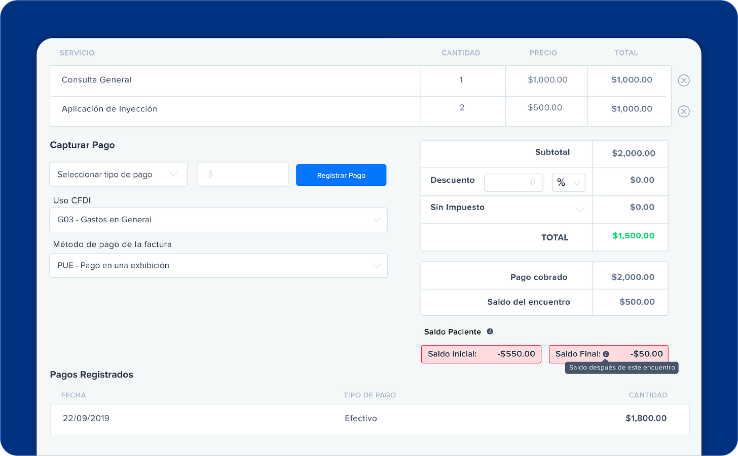 Crea tus propios signos vitales, gestiona saldos desde la pantalla de cargos y centraliza la configuración de tu clínica.